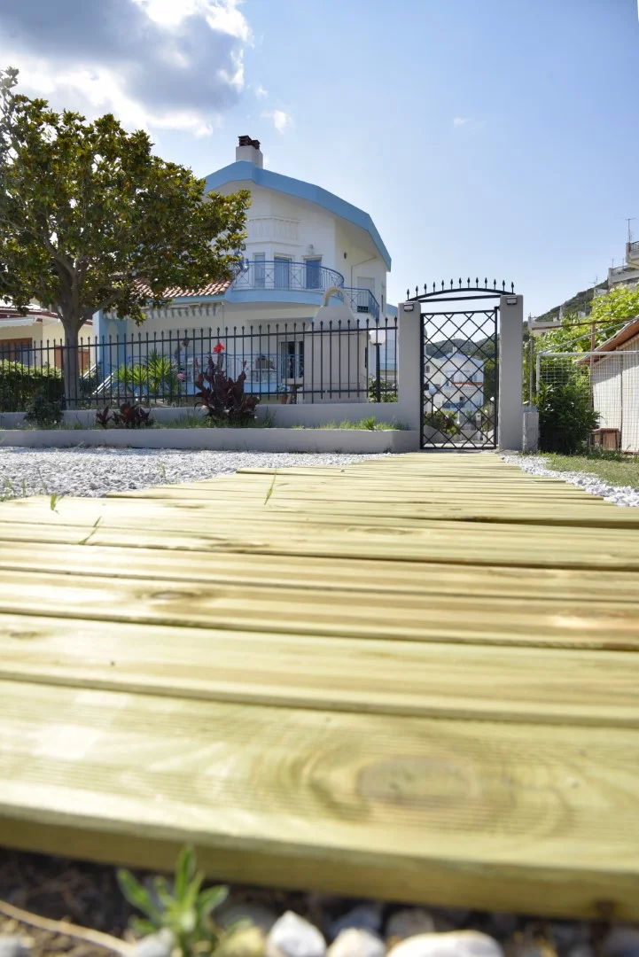 Enjoy your vacation with rest and relaxation with your stay at SeafrontGardenHouse combining the comfortable interior of the house, its spacious green garden and unlimited swimming and relaxation in the best sea of the area located 30 meters from the house. Easy and quick access to organized neighboring beach bars.